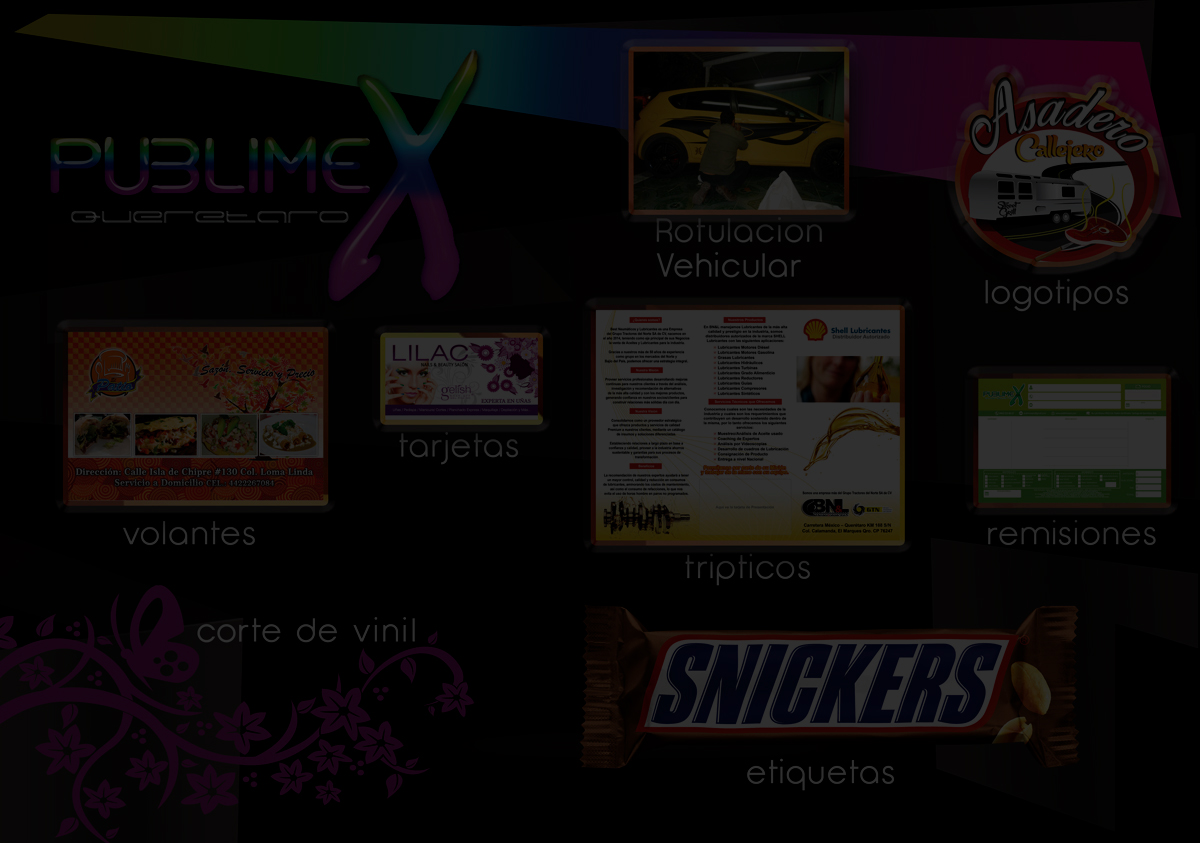 Publimex Queretaro, es una empresa que se dedica a la impresion de medios, lonas viniles, papeleria como volantes, tarjetas tabloides y otros sustratos, corte de vinil e instalaciones de los mismos. Tambien se fabrican letreros a la medida cajas de luz, bastidores, cortinas enrollables caballetes, letras 3d, una  por una o en cajon la luz que se ocupa por default es led, pero se puede ocupar tubo de luz segun sea el caso.